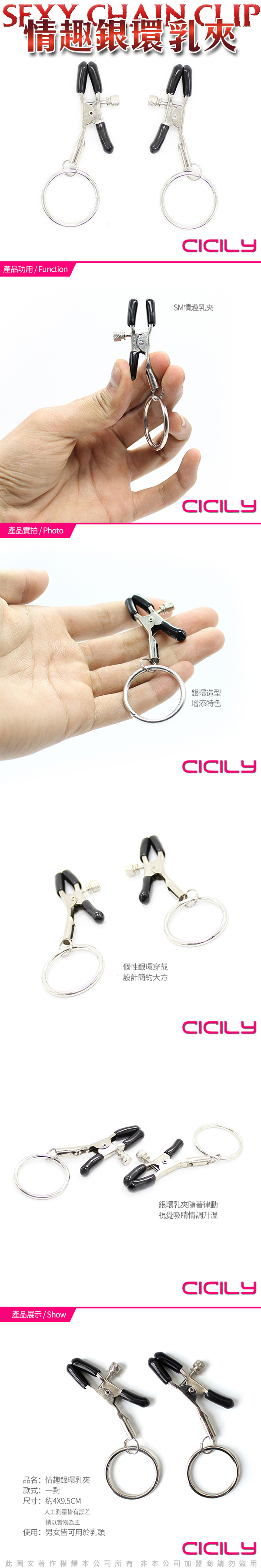 .主商品:CICILY 情趣銀環 乳夾