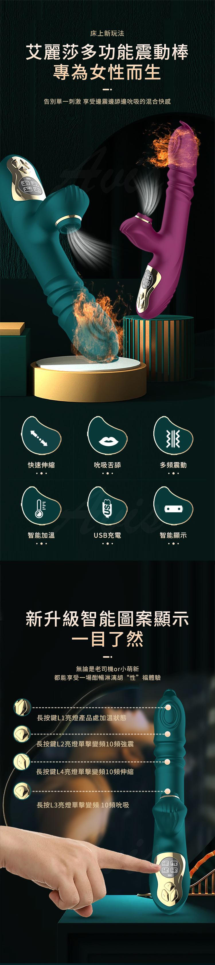 產品名字:艾麗莎|智能顯示|伸縮吸吮按摩棒