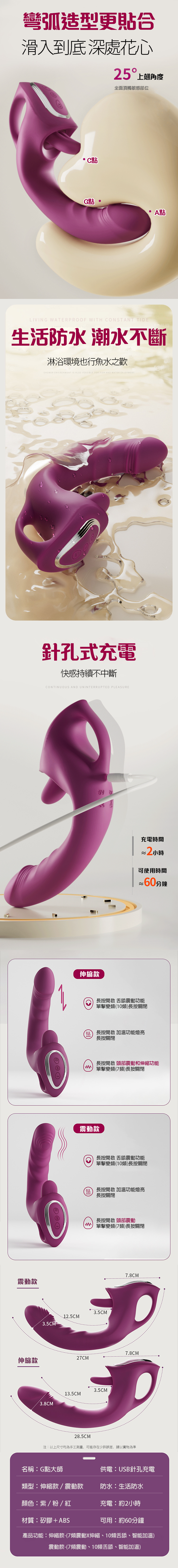 商品功能:10頻舌舔/7頻強震/自由彎曲/智能恆温