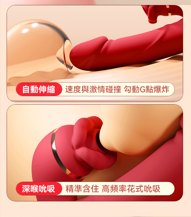 舌舔伸縮震動款:伸縮設計配合舌舔震動功能,讓每次使用都充滿驚喜。