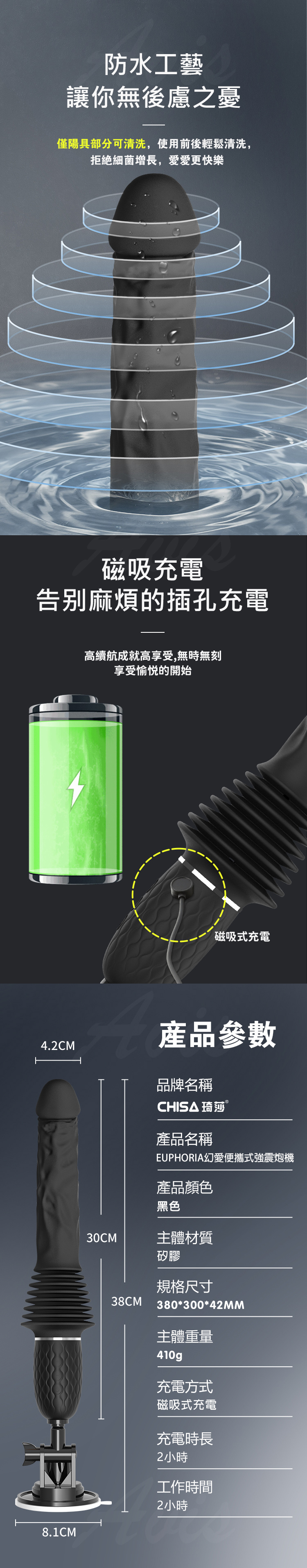 產品名稱:CHISA|寶劍 伸縮+震動|加溫遙控逼真老二吸盤炮機-黑