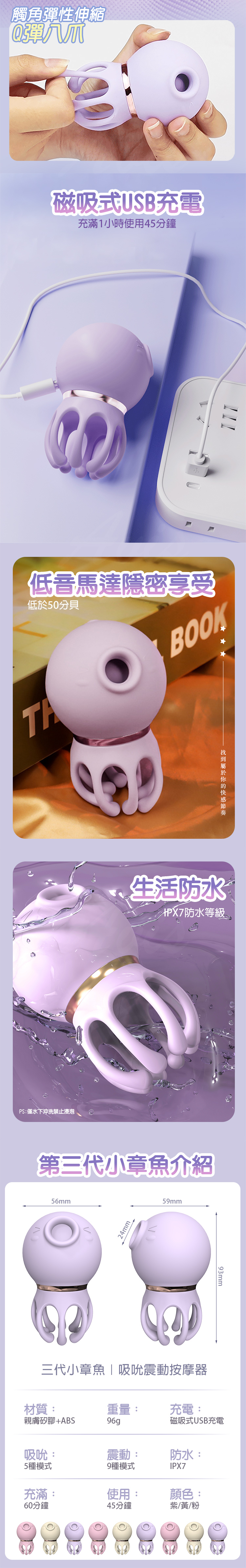 靈感來自深海萌物,卻有著讓你酥麻尖叫的實力。小章魚第三代升級登場,柔軟觸角、深度包覆,讓敏感點享受360度高潮刺激!