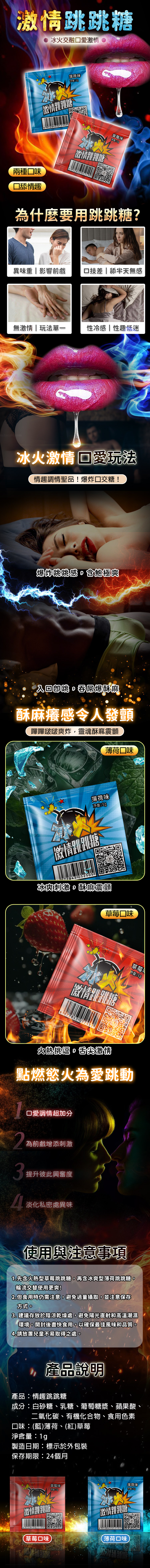商品名稱:交悅情趣跳跳糖|冰火雙感口用糖 草莓味