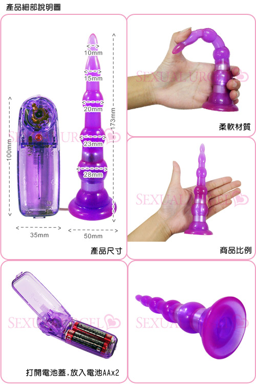 .商品名稱:迷惑真情人.6.6吋電動連環珠後庭棒-紫