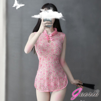 【Gaoria】性感側開衩 薄紗復古旗袍套裝 黑
