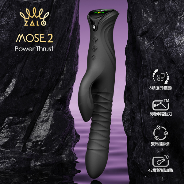 Zalo Mose 2|雙頭加熱抽插按摩棒 黑